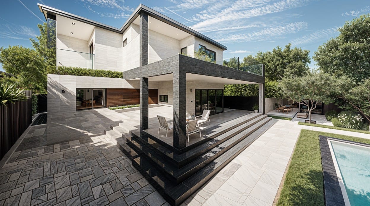Modern Mimari: Düz çatı ve geniş cam yüzeylerle ferah yaşam alanları.