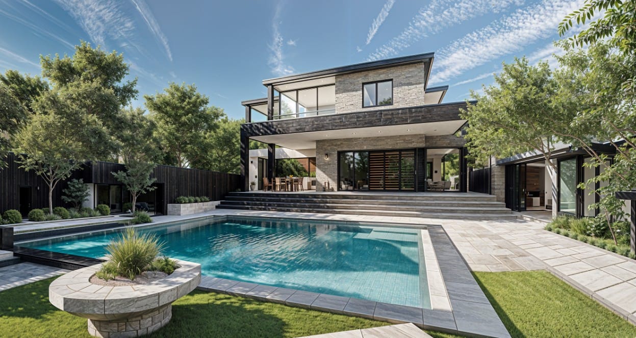 Doğayla Bütünleşen Mekânlar: Bahçe, veranda ve havuz alanı ile uyumlu yaşam.