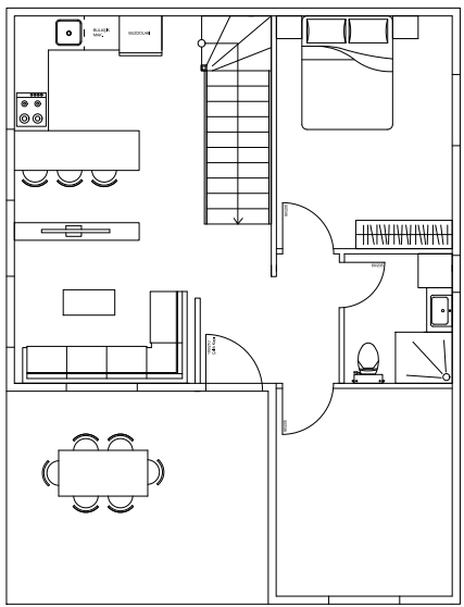 Açık plan salon (mutfak ve yemek alanı ile entegre)