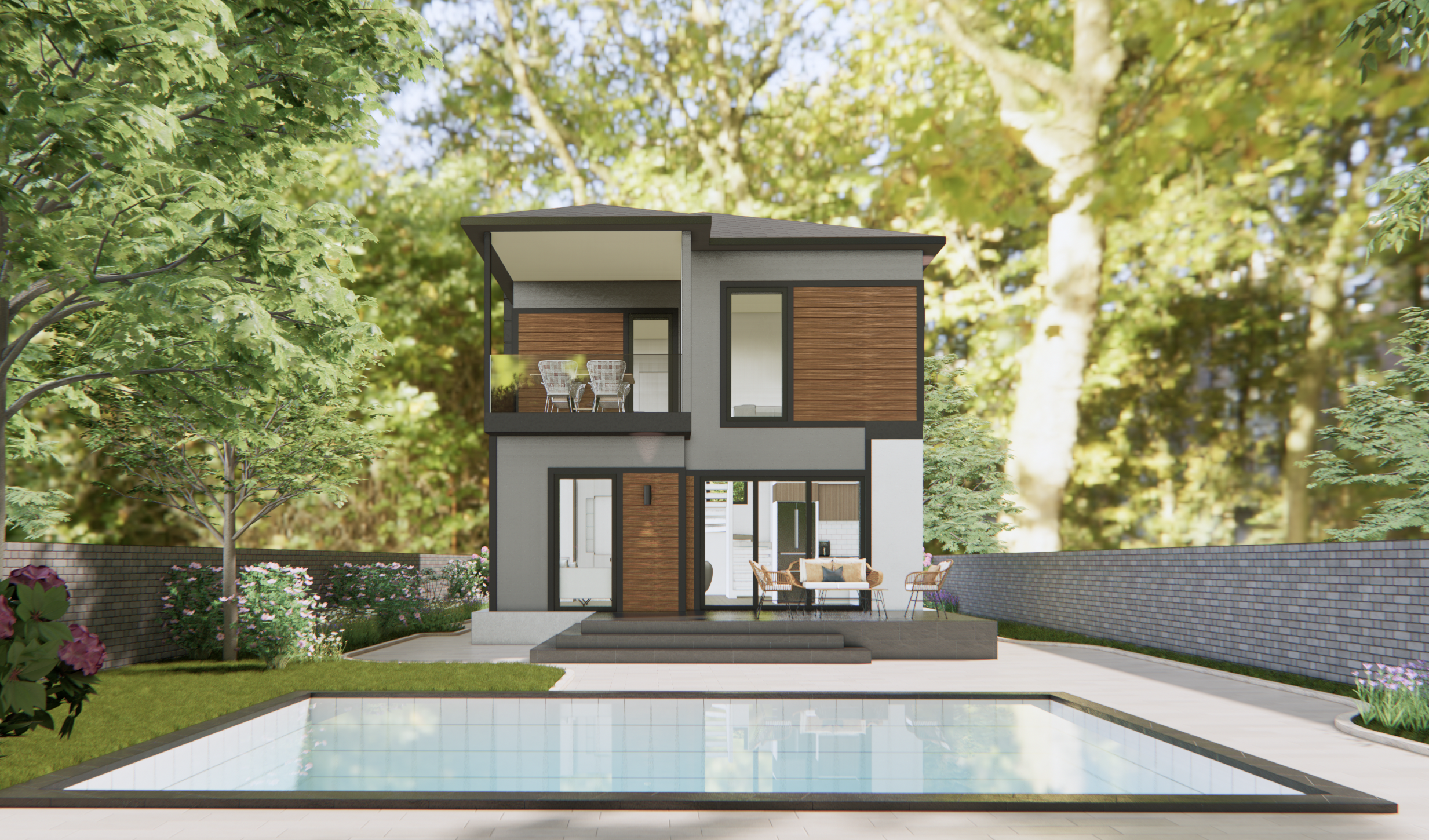 Modern Mimari: Düz çatı tasarımı ve geniş cam yüzeylerle ferah yaşam alanları.