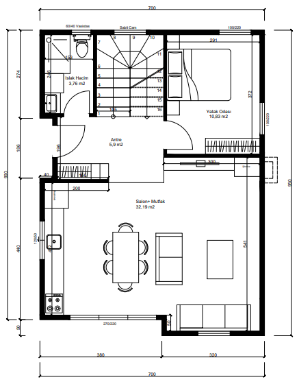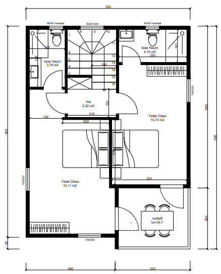 Toplam İnşaat Alanı: Yaklaşık 190 m² (Brüt)